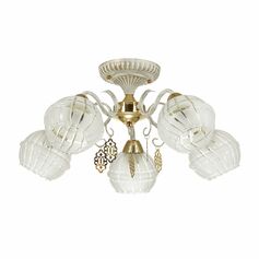 Изысканная серия Bellaromana смотрится свежо и романтично, благодаря нежному белому цвету с эффектной золотой патиной, которой покрыта арматура светильника. Плафоны из красивейшего белого стекла с рисунком. Светильник также украшен золотыми элементами и изящными подвсеками, так идеально совпадающими по тону с золотой патиной