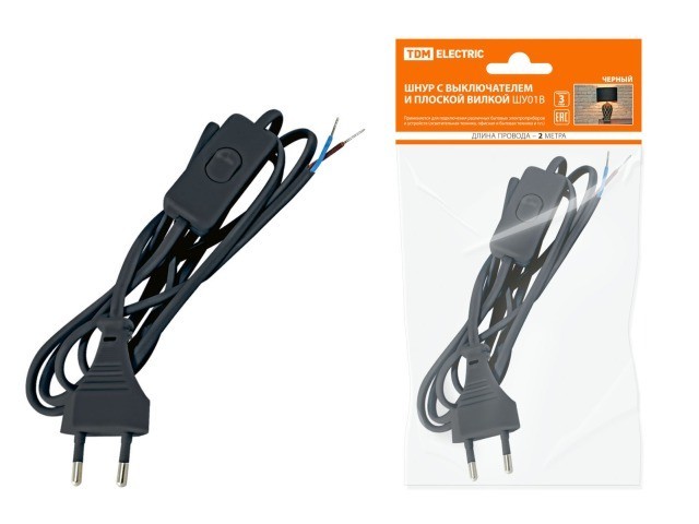 Шнур TDM SQ-1305-0002 шнур для бра с выкл. ШУ01В 6А 250В 2м (ШВВП 2х0,75) _черный от бренда TDM в стиле под заказ