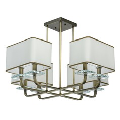 Элегантная люстра из коллекции «Наполи» привлекает сдержанностью форм и изяществом. Металлическое основание цвета античной бронзы подчеркнуто аккуратными текстильными абажурами белого оттенка. Они украшены декоративными полосами по краям, а также дополнены розетками из прозрачного хрусталя. Строгая геометричность форм в сочетании с освежающей цветовой гаммой будет гармонично смотреться в интерьерах с различным стилевым решением.