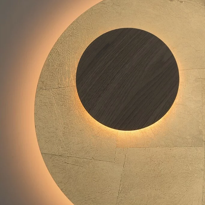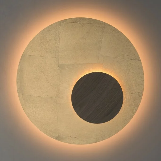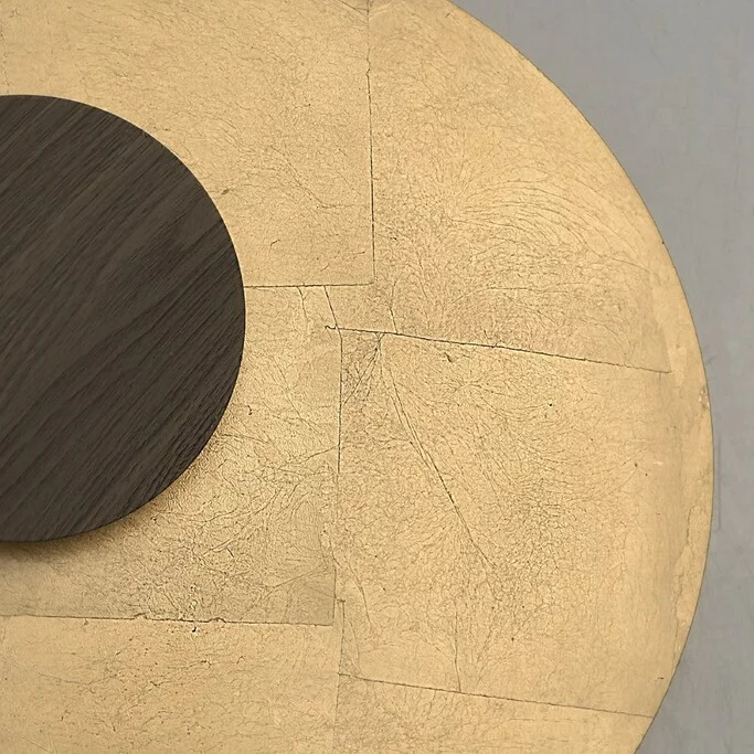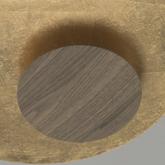 Нетривиальный дизайн настенно-потолочного светильника отражает один из главных трендов: смешение брутального индустриального стиля и гламура. Модели выполнены из металла, дополненного эффектом поталь в двух вариациях: цвета серебра и золота. Оригинальная декоративная вставка, красиво преломляющая свет, украшена рисунком, повторяющим фактуру натурального дерева.