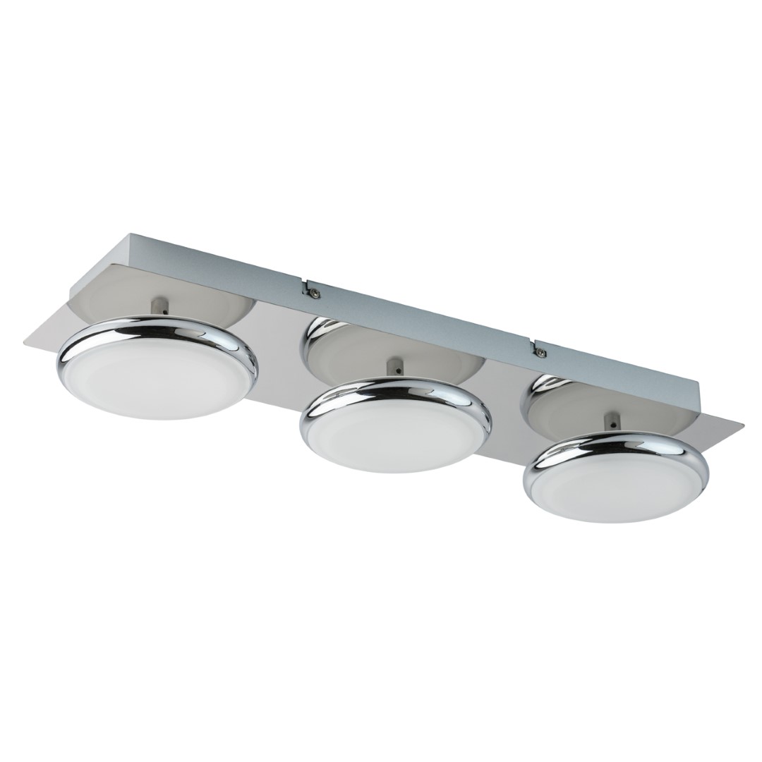 Минималистичный светильник прекрасно дополнит современную обстановку. Сдержанное хромированное металлическое основание подчеркнуто плоскими округлыми плафонами из металла того же оттенка и матового акрила. Такой тандем смотрится невероятно гармонично и стильно.