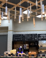 Заказчики обратились ко мне с просьбой сделать пекарню очень домашней, уютной, теплой. Такой, какие бывают в деревнях у бабушек. Мы использовали много теплых оттенков и фактур: дерево, кирпич. Постеры на стенах с изображением собственной продукции буфета дополняют интерьер. А плетеные светильники так же отсылают к уюту деревенского быта.